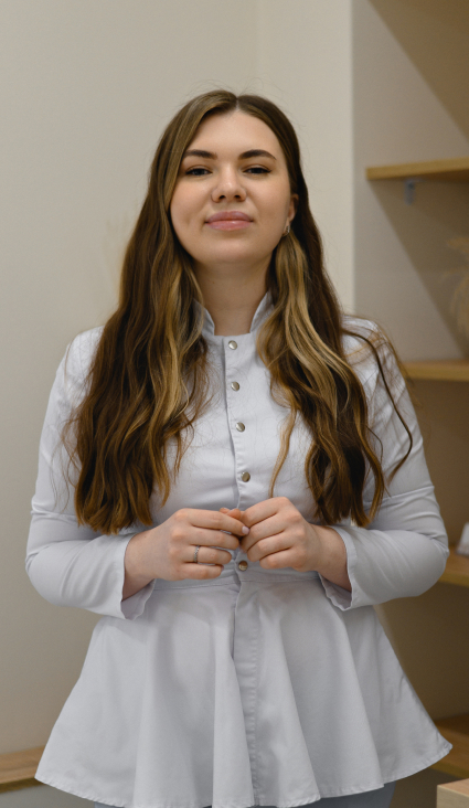 Косметолог с высшим медицинским образованием (окончила СПбГПМУ по специальности «Педиатрия», СпбМСИ: ординатура по специальности «Дерматовенерология»).
